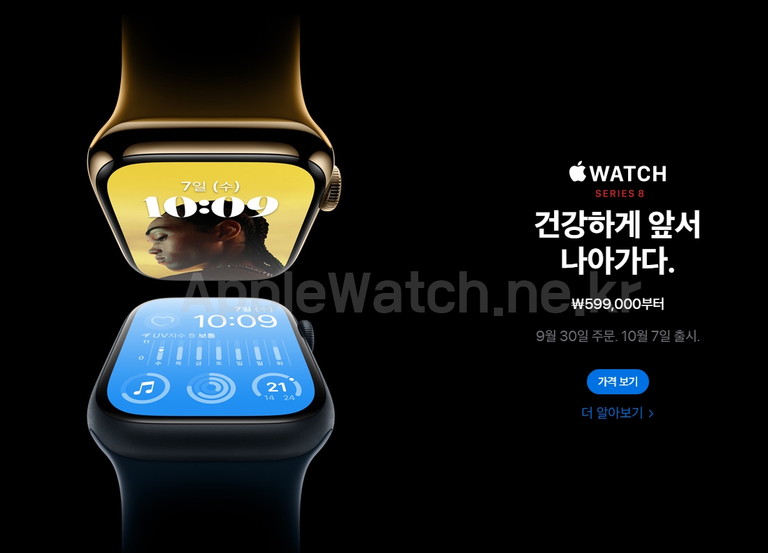 애플 공식 홈페이지에 따르면 국내 애플워치 8세대 출시일은 10월 7일 금요일로 확정되었다! 사전예약은 일주일 전부터 진행이 된다!